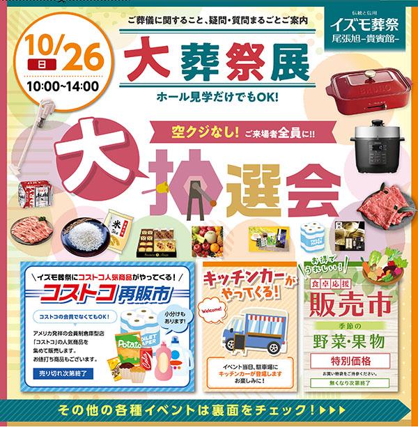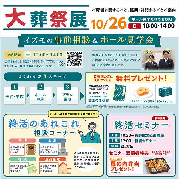 イズモ葬祭 尾張旭貴賓館より10/26(日)、『大葬祭展』開催のご案内です。