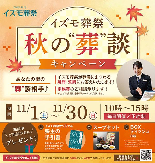イズモ葬祭 秋の葬談キャンペーン!!(11/1~11/30)