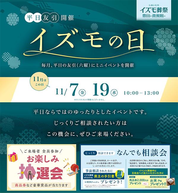 トップ > お知らせ > 11月 イズモ葬祭 豊田貴賓館 『イズモの日』イベント開催のご案内