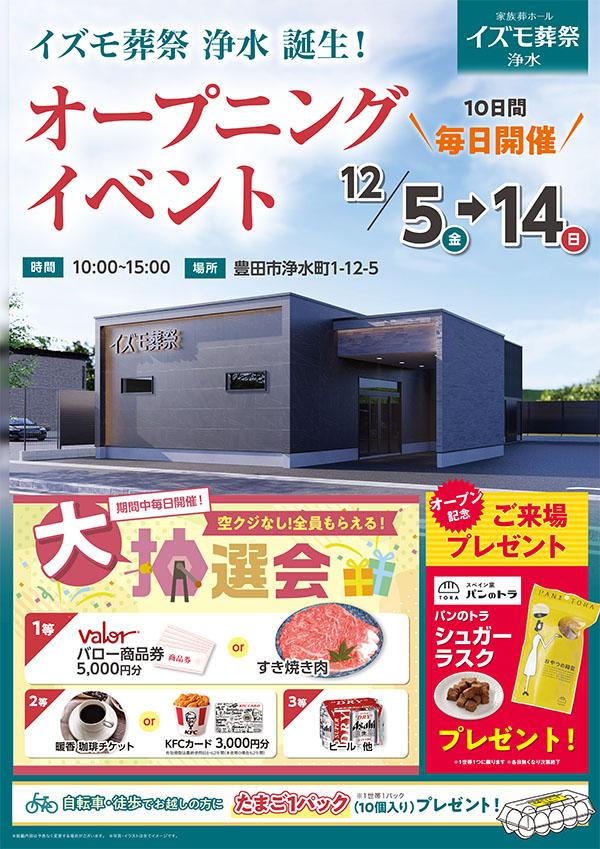 12月5日(金)⇒12月14日(日)家族葬ホール イズモ葬祭 浄水 オープニングイベント開催のご案内