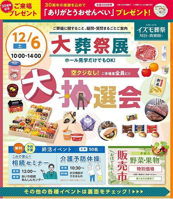 イズモ葬祭 刈谷貴賓館より12/6(土)、『大葬祭展』開催のご案内です。