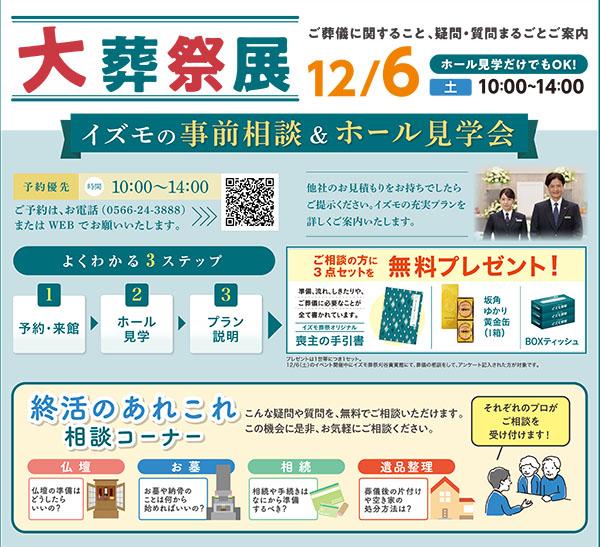 12/6(土) イズモ葬祭 刈谷貴賓館 『大葬祭展』開催のご案内