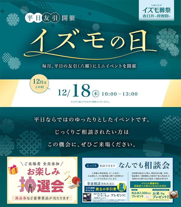 トップ > お知らせ > イズモ葬祭 春日井貴賓館12月『イズモの日』イベント開催のご案内