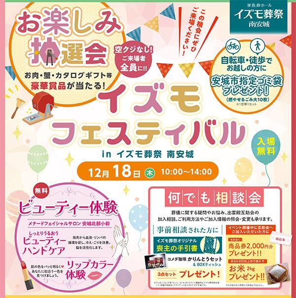 12/18(木) 家族葬ホール イズモ葬祭 南安城 「イズモフェスティバル」開催のご案内
