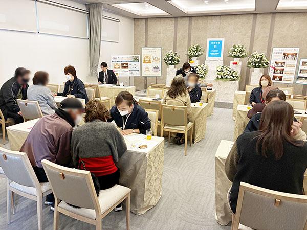 イベント中は、ホールに祭壇を展示して、実際の雰囲気をご確認いただいたり、遺族控室の充実設備をご見学いただいたり、ご葬儀に関する様々な展示とパネルでご案内をさせていただきました。