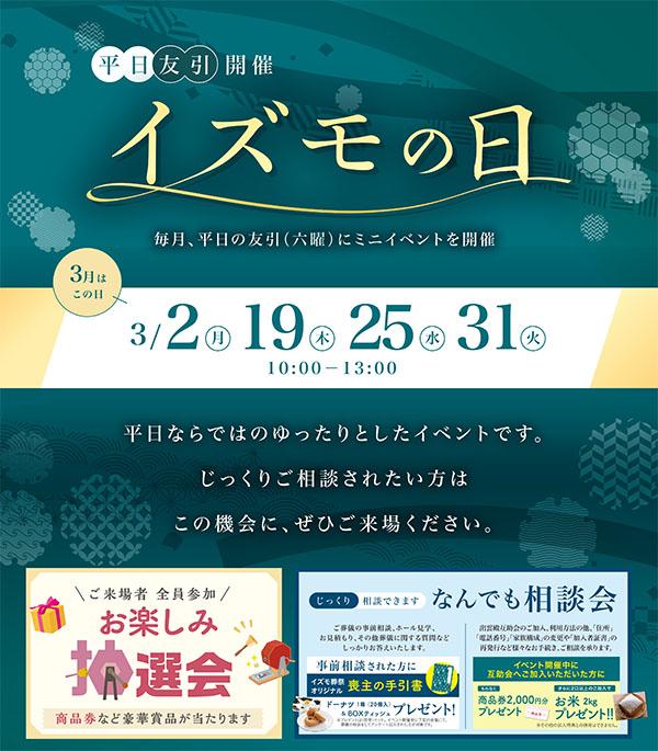 トップ > お知らせ > 3月 イズモ葬祭 『イズモの日』イベント開催のご案内
