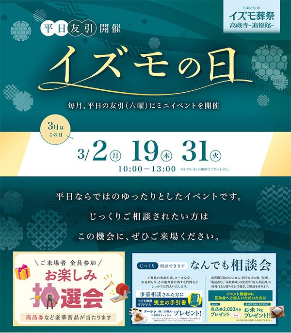 イズモ葬祭 高蔵寺追憶館 3月『イズモの日』イベント開催のご案内
