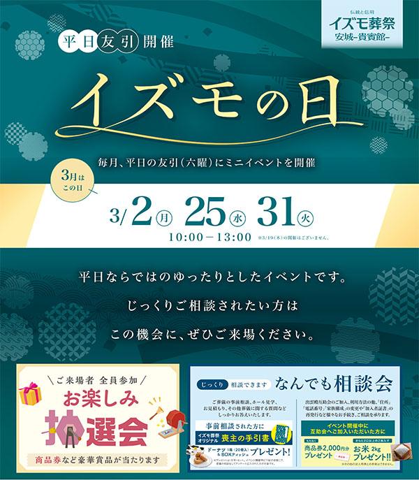 イズモ葬祭 安城貴賓館 3月『イズモの日』イベント開催のご案内