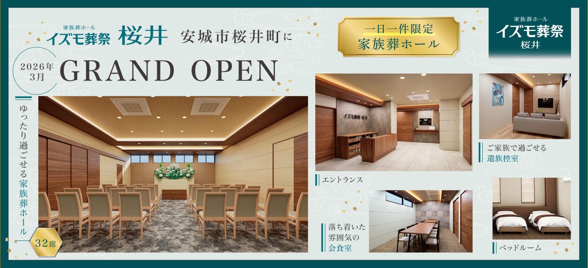 家族葬ホール イズモ葬祭 桜井が本日(2026年3月2日)いよいよグランドオープンです
