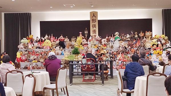 人形供養祭には、沢山の人形が集まりました。役目を終えた人形たちは心を込めて供養していただきました。お客様にも供養祭にご参加いただきました。供養祭に参加される方も多くいらっしゃいました。