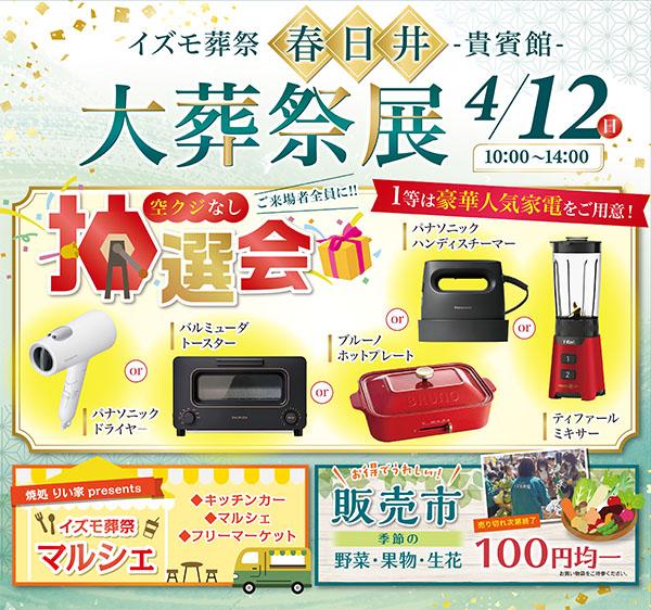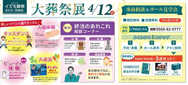 イズモ葬祭 春日井貴賓館より4/12(日)、『大葬祭展』開催のご案内です。