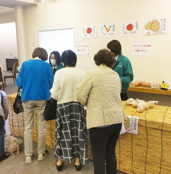 毎回好評の販売市は季節の野菜を100円均一でご用意しました。今回も好評で、沢山の方にお買い物を楽しんでいただきました。