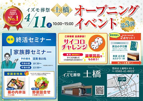 4/11(土)家族葬ホール イズモ葬祭 土橋 『オープニングイベント第3弾』 開催のご案内