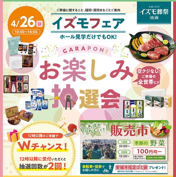 トップ > お知らせ > 4/26(日) イズモ葬祭 池浦 『イズモフェア』開催のご案内